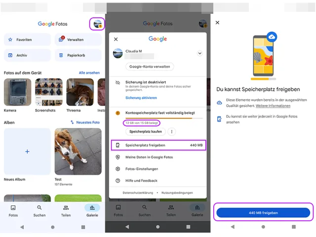 - Tippen Sie in Google Fotos auf das Google-Konto-Symbol.