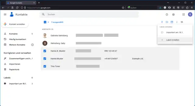 Tipp! Möchten Sie nur bestimmte Kontakte exportieren? Und handelt es sich um eine Gruppe von Kontakten, die Sie immer wieder für diesen Zweck brauchen? Markieren Sie die gewünschten Kontakte durch Anhaken. Oben rechts finden Sie ein Symbol für Label. Hier gehts zu Label erstellen. Erzeugen Sie zum Beispiel ein Label namens Vereinsmitglieder und weisen Sie allen zutreffenden Kontakten dieses Label zu; auch wenn Sie welche neu erfassen. Künftig können Sie dann direkt die Kontakte mit diesem Label exportieren.