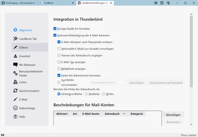 Schritt 4: Nach dem Einrichten empfiehlt es sich, Thunderbird neu zu starten, worauf die Kontakte synchronisiert sind.