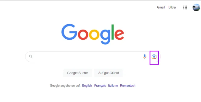 - Im Suchfeld sehen Sie rechts ein Kamera-Symbol. Klicken Sie darauf.