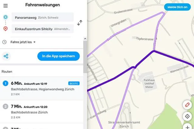 Schon 2020 war es möglich, Routen auch via Webversion zu planen und aufs Handy zu schicken. Wählt man In die App speichern, wird ein QR-Code angezeigt. Zudem gibt es einen Spurassistenten, der Sie auf mehrspurigen Strassen rechtzeitig informiert, wo Sie sich einordnen müssen.