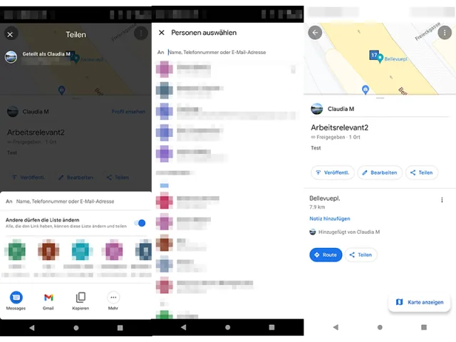 In der mobilen Maps-Version (Android) öffnen Sie eine bereits erstellte Liste, die auf Privat oder freigegeben gestellt ist.