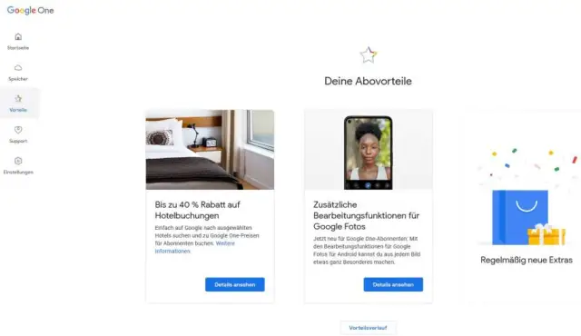 Unter Vorteile finden Sie aktuelle Abovorteile wie Rabatte auf Hotelbuchungen oder Infos zu den zusätzlichen Bearbeitungsfunktionen für Google Fotos.