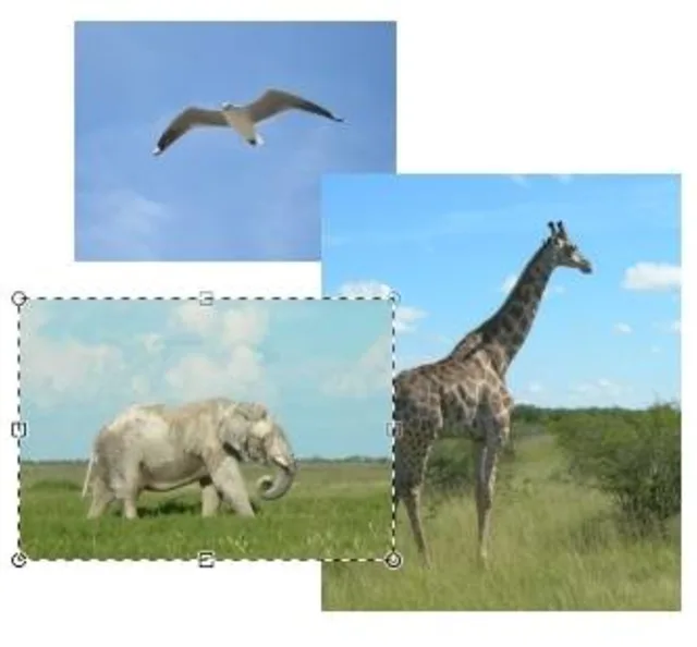 Starten Sie das Programm, und es wird automatisch eine Datei im Format 800x600 Pixel als weisses Blatt zur Verfügung gestellt. Um ein Bild einzufügen gehen Sie ins Menü "Ebenen" und rufen Sie den Menüpunkt "Aus Datei importieren" auf. Wählen Sie das erste Bild aus, das Sie einfügen möchten. Das Bild wird in der linken oberen Ecke des weissen Blattes auf einer neuen Ebene eingefügt. Mit dem Werkzeug "Maskierten Bereich editieren" können Sie das Bild verschieben. [2m] Wenn Sie auf die Ecken klicken und ziehen, können Sie das Bild vergrössern oder verkleinern. Beachten Sie dabei, dass eine Vergrösserung Qualitätsverluste mit sich bringt, da aus jedem Bild-Pixel mehrere erstellt werden müssen. Das Programm kann nur ungefähr schätzen, welche Farbe die hinzugefügten Pixel haben sollen.