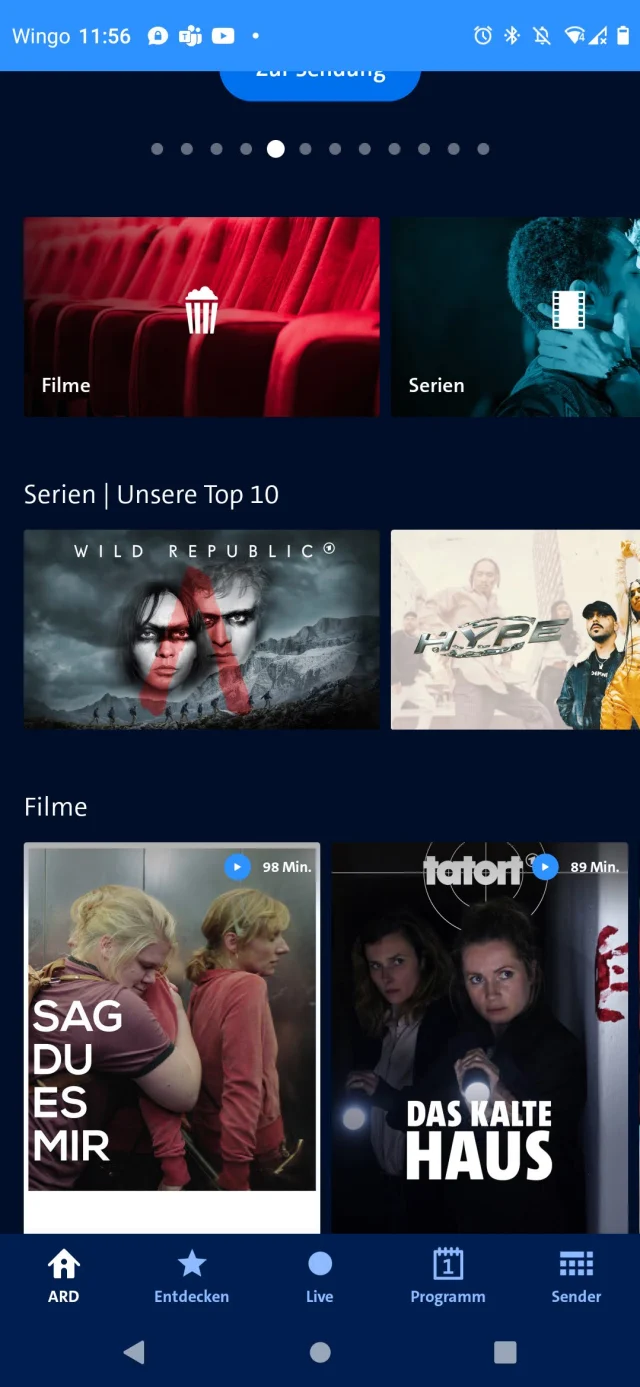 Sie finden die Kategorien Filme, Serien, Dokus, Tagesschau / Nachrichten, Kinder und Familie etc. oder können auch hier Sendungen live anschauen.