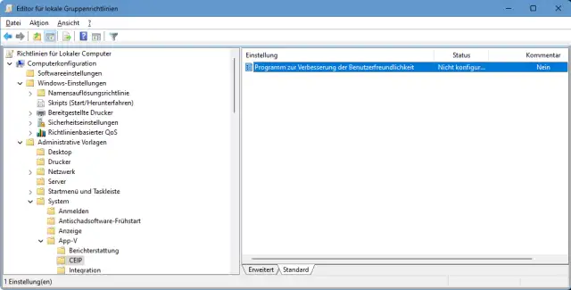Öffnen Sie nach einem Klick auf Start und dem Eintippen von Gruppenrichtlinie den Gruppenrichtlinien-Editor. Alternativ drücken Sie Windowstaste+R, tippen gpedit.msc ein und drücken Enter.Machen Sie die Gruppenrichtlinie ausfindig, die Sie nachverfolgen wollen. Nehmen wir zum Beispiel unter Computerkonfiguration/Administrative Vorlagen/System/App-V/CEIP den Eintrag Programm zur Verbesserung der Benutzerfreundlichkeit. Das wird in Datenschutzkreisen kritisch beäugt, weil der PC damit automatisch Nutzungsdaten an Microsoft übermittelt.