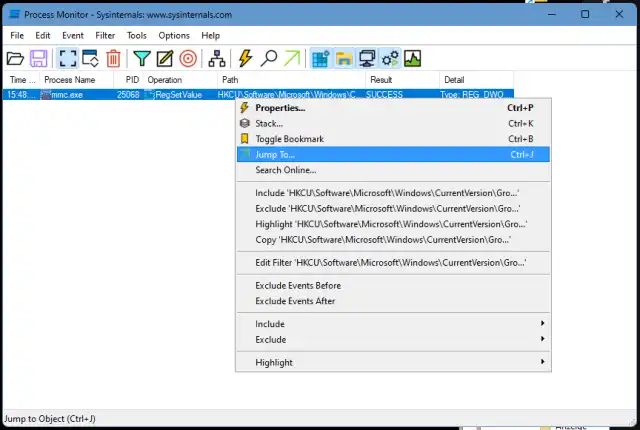 Quelle: PCtipp.chNach dem Klick auf OK erscheint eine Zeile. Klicken Sie mit rechts auf den Eintrag bei Path und wählen Sie Jump To.