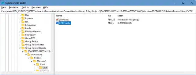 HKEY_CURRENT_USER\Software\Microsoft\Windows\CurrentVersion\Group Policy Objects\{0AF4B903-8DC7-4126-B320-A72F6435868E}Machine\SOFTWARE\Policies\Microsoft\AppV\CEIP