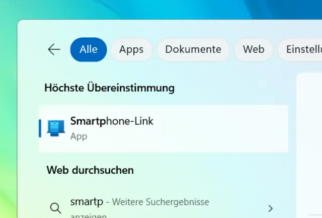 Bild 2: Smartphone-Link ist meist in Windows vorinstalliert. Suchen Sie einfach danach