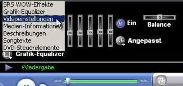 Öffnen Sie den Film mit dem Windows Media Player und klicken Sie oben rechts auf das Mittlere der drei Kreissymbole, um die Einstellungen anzuzeigen.