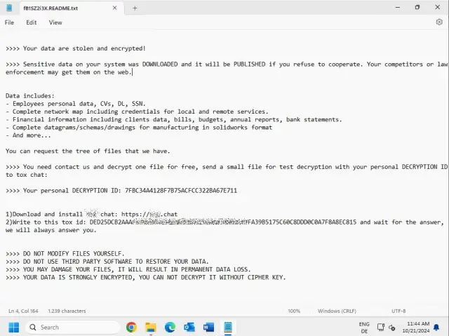 Bild 2: In einer Textdatei geben die Erpresser eine Anleitung, wie die Opfer Kontakt aufnehmen sollen, um das Lösegeld zu zahlen