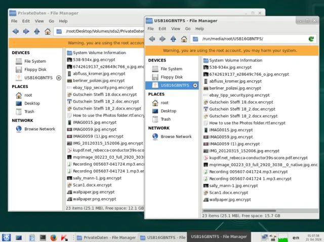 Anschliessend greifen Sie auf Ihre Festplatte zu und sichern alle verschlüsselten privaten Daten, die Sie benötigen, Bild 8. Denken Sie daran, dass eventuell viele Daten in einem Cloud-Speicher stecken. Die haben Sie bereits.