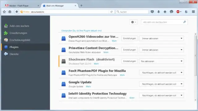 Quelle: PCtipp.chMozilla Firefox: Klicken Sie oben rechts aufs Hamburger-Menü, gehen Sie zu Add-Ons und wechseln Sie in der linken Spalte zu Plugins. In der Liste der Plugins klappen Sie das Menü hinter «Shockwave Flash» auf und wählen Sie Nie aktivieren. Standardmässig ist Flash hier aber gar nicht mehr vorhanden. Sie können das unter https://helpx.adobe.com/de/flash-player.htm verifizieren.