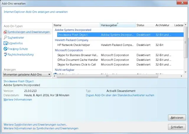 Klicken Sie in der linken Spalte allenfalls auf Symbolleisten und Erweiterungen und wählen Sie unten bei «Anzeigen» gegebenenfalls «Alle Add-Ons». Im rechten Fensterteil finden Sie entweder «Adobe Systems Incorporated» oder (unter Windows 10) den Hersteller «Microsoft Windows Third Party Application Component». In beiden Fällen dürfte das Flash-Plugin als «Shockwave Flash Object» drinstehen. Klicken Sie es an und verwenden Sie unten die Schaltfläche Deaktivieren. Tipp: Falls Sie hier auch Java entdecken, deaktivieren Sie das ebenfalls. Wenn Sie danach die Seite https://helpx.adobe.com/de/flash-player.htm neu laden und die Überprüfung erneut vornehmen, werden Sie sehen, dass Flash jetzt deaktiviert ist.