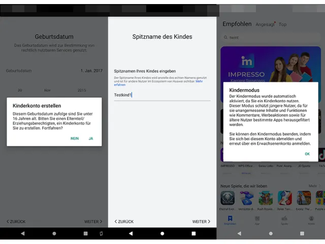 Huawei AppGallery: Kinderkonto erstellen