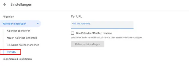 Hinweis: Geben Sie die URL nicht weiter, denn jeder, der sie hat, kann dann Ihren Kalender auf diese Weise einsehen.