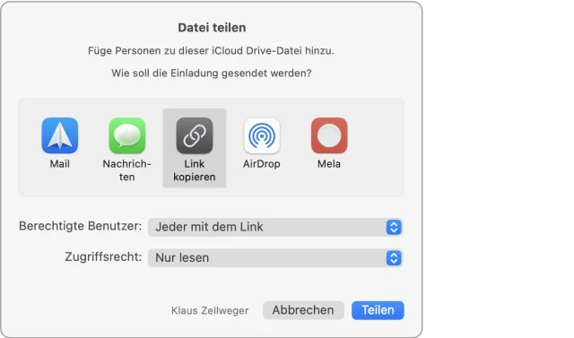 Links zu den Dateien in iCloud lassen sich auf verschiedenen Wegen in Umlauf bringen