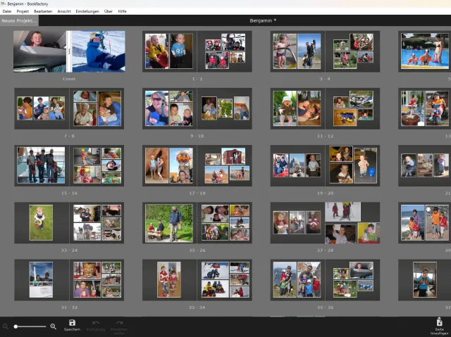 Um ein Fotobuch assistentengeführt zu erstellen, klickt man im Hauptmenü zuerst auf Fotobuch und wählt danach die Oberfläche sowie den Einband. Anschliessend werden Hintergrund und Seitenanzahl festgelegt, wobei der Autofill-Assistent die zuvor ausgewählten Bilder auf den Seiten korrekt verteilt und gekonnt arrangiert. Prima durchdacht: Im letzten Schritt, und noch bevor der Assistent die ausgewählten Fotos arrangiert, können Anwender nochmals bei der Bildreihenfolge nachjustieren. Anwender profitieren zudem von einer durchdachten Editierfunktion, mit der sich die Fotos nahezu perfekt einpassen lassen. Positiv: Selbst Hintergründe können nachträglich auf einzelne Seiten oder auch komplett auf das Fotobuch angewendet werden, was Zeit spart.