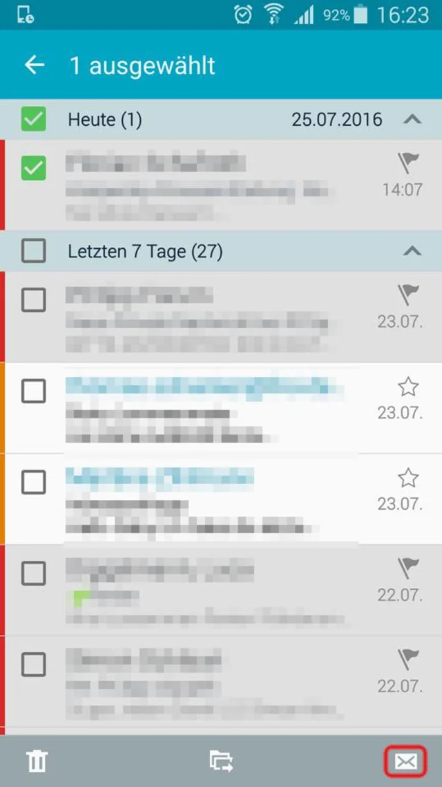 Markierte Mails kann man z.B. in der Standard-Mail-App von Samsung-Geräten übers Umschlagsymbol wieder auf «ungelesen» setzen
