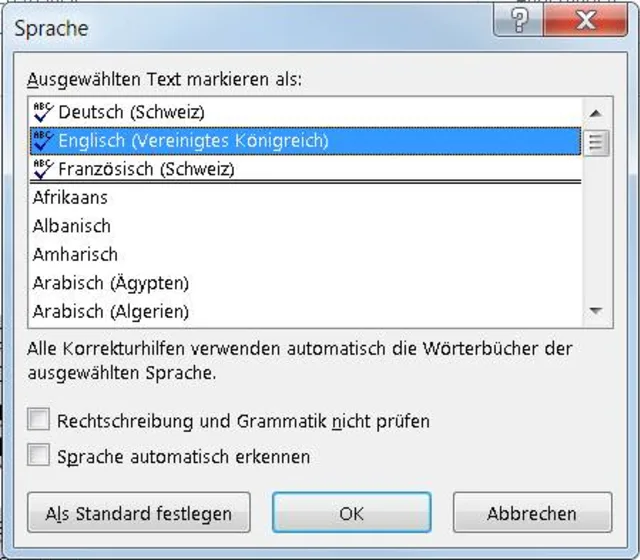In Word Korrektursprachen hinzufügen und einstellen