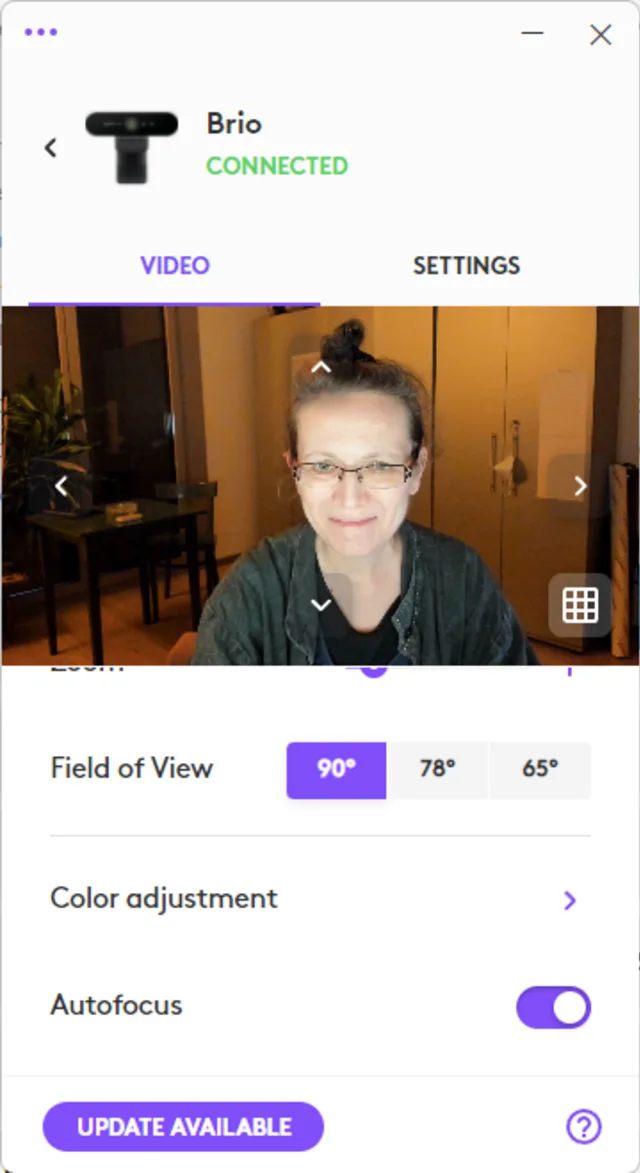Quelle: PCtipp.chTipp: Im Falle der Logitech Brio 4K gibt Ihnen auch während der Teams-Nutzung die App Logi Tune schnellen Zugriff auf den Zoom, auf die Grösse des Bildausschnitts (Field of View) und Farbanpassungen (Color adjustment) mit Filtern und Anpassungen (Adjustments) wie Weissabgleich (White Balance), Helligkeit (Brightness), Kontrast, Sättigung (Saturation) und Schärfe (Sharpness). Probieren Sie es aus!