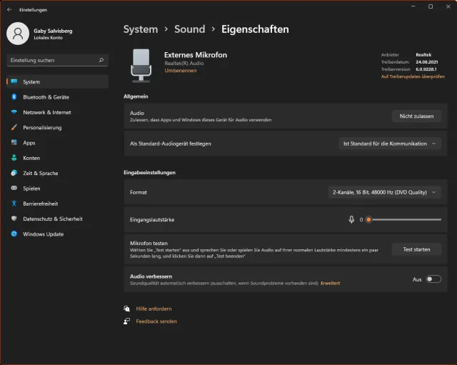 Öffnen Sie via Start/Einstellungen/System den Bereich Sound. Sie finden die Geräte getrennt in den Bereichen «Ausgabe» (z.B. Lautsprecher, Kopfhörer) und «Eingabe» (z.B. Webcam-Mik und Headset-Mik). Möchten Sie für Kommunikation in erster Linie das externe Mikrofon, also z.B. jenes im Headset benutzen? Jetzt Obacht: Klicken Sie rechts von Externes Mikrofon auf das Winkelsymbol. Bei Als Standard-Audiogerät festlegen wählen Sie Ist Standard für die Kommunikation. Soll Windows hingegen ausschliesslich das Mikrofon der Webcam verwenden, wechseln Sie oben einen Schritt zurück und aktivieren Sie das Mikrofon Ihrer Webcam.