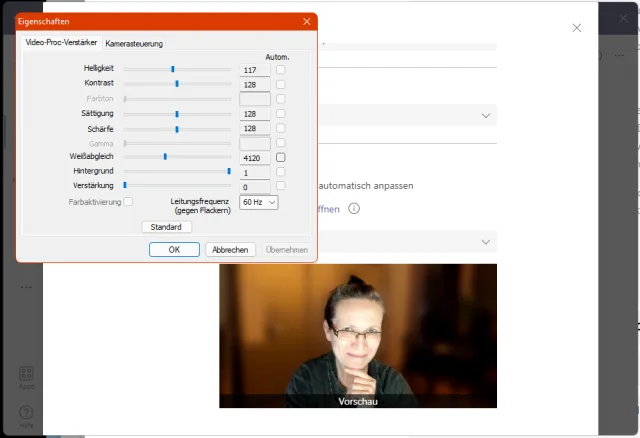 Die Kameraeinstellungen in Teams