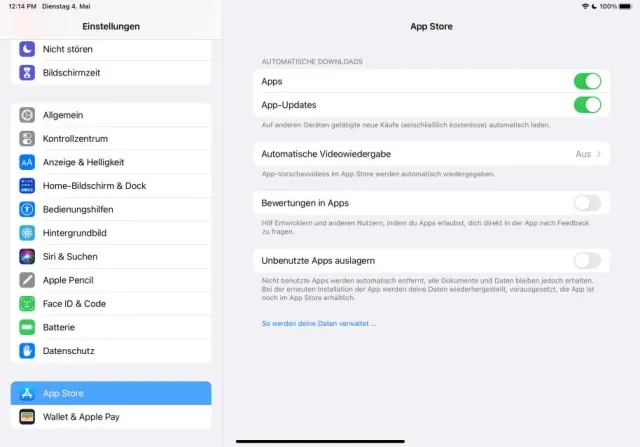 Öffnen Sie auf dem iPad die Einstellungen, navigieren Sie zu Apps und dann App Store und deaktivieren Sie dann unter Automatische Downloads den Punkt Apps. Der Prozess funktioniert auch umgekehrt auf dem iPhone oder jedem anderen iOS-Gerät.