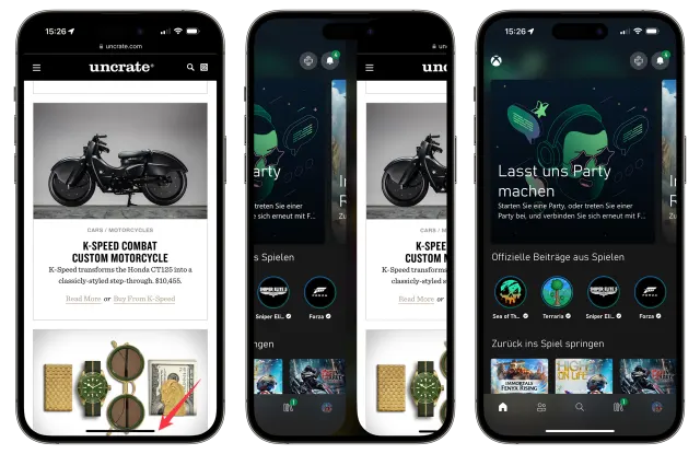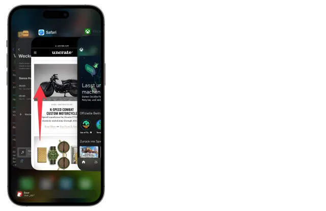 Wird von ganz unten nach oben gewischt, öffnet sich der App-Umschalter