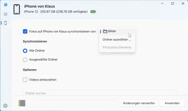 Bild 4: Fotos werden aus einem Ordner am PC mit dem iPhone synchronisiert; aber leider schaffen es die bestehenden Aufnahmen vom iPhone nicht zurück auf den Rechner