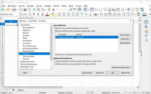 Die Java-Laufzeitumgebung erfüllt auf manchen Systemen durchaus einen Zweck. So werden zwar die allermeisten Nutzerinnen und Nutzer etwa des freien Büropakets LibreOffice sein Fehlen nicht bemerken. Sobald Sie aber auf Datenbank- oder Makro-Funktionen zurückgreifen, werden Sie Java wieder installieren wollen. Schliessen Sie die LibreOffice-Programme, surfen Sie zu https://www.java.com/de/download/ und klicken Sie auf den grossen roten Knopf Einverstanden und mit kostenlosem Download beginnen. Nach dem Download klicken Sie doppelt auf die heruntergeladene Datei, um sich im Setup-Assistenten durch die einfache Installation zu klicken.Starten Sie wieder die Anwendung, die Java braucht, beispielsweise LibreOffice Calc. Entweder stellt diese beim Start automatisch fest, dass Java wieder da ist oder Sie können ihr den Weg weisen. Etwa in LibreOffice Calc können Sie unter Extras/Optionen/LibreOffice/Erweitert nachschauen, ob es Java bereits gefunden hat. Andere Anwendungen, die Java benötigen, bringen ähnliche Einstellungsmöglichkeiten mit. Falls Sie ihm den Weg zeigen müssen, installiert sich die derzeit aktuelle Version unter Windows im Ordner C:\Program Files\Java\jre1.8.0_301\ (oder C:\Programme\...). Die 32-Bit-Version dürfte unter C:\Program Files (x86)\Java\jre1.8.0_301\ (C:\Programme (x86)\...) zu liegen kommen.