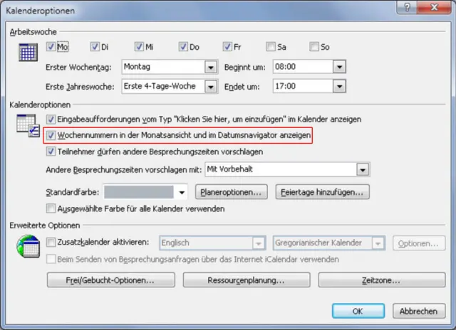 Lösung: Das Einblenden der Kalenderwoche in Outlook ist nur eine kleine Einstellungssache.