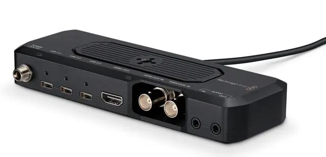 Das «Camera ProDock» von Blackmagic (CHF 249.95) wird über USB-C mit dem iPhone 17 Pro verbunden und ermöglicht den Anschluss von professionellem Kino-Equipement, inkl. der Verwendung von Genlock
