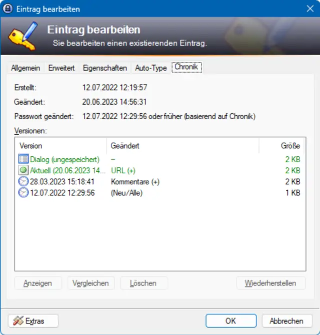 KeePass und KeePass XC sind zwei mächtige Passwortverwalter, die ohne Cloud auskommen und Ihre Kennwörter sicher verwahren. Nun haben Sie darin etwas herumgeklickt und die Datenbank geschlossen. Bei der Rückfrage, ob Sie speichern wollen, landete Ihr Klick vielleicht etwas vorschnell auf Speichern. Jetzt sind Sie nicht sicher: Haben Sie etwas geändert, das Sie nicht ändern wollten? Wenn ja: In welchem Eintrag haben Sie denn zuletzt welche Änderung vorgenommen?