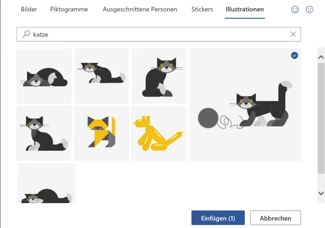 Was im Reiter Einfügen unter Bilder mit Archivbilder etwas angestaubt klingt, ist in Wahrheit ein grosser Fundus an Fotografien, Piktogrammen, comicartigen Stickern und Illustrationen in ClipArt-Manier. Diese Bildelemente dürfen Sie hochoffiziell in Ihren Office-Dokumenten verwenden.