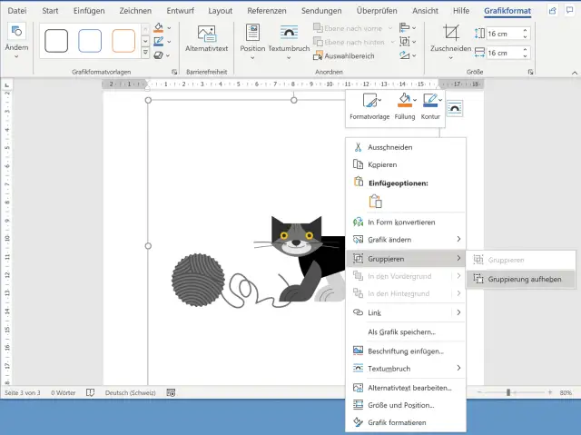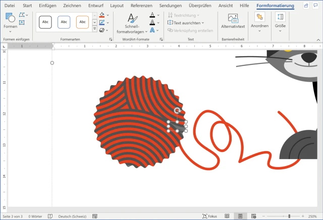 Quelle: PCtipp.chDarf die Katze in Grau- und Schwarztönen bleiben, aber Sie hätten das Wollknäuel gerne in Rot? Klicken Sie mit rechts auf die Illustration und wählen Sie via Gruppieren den Punkt Gruppierung aufheben. Word fragt zurück, ob es die Grafik in ein Microsoft-Office-Zeichnungsobjekt umwandeln soll. Klicken Sie auf Ja, Bild 10.