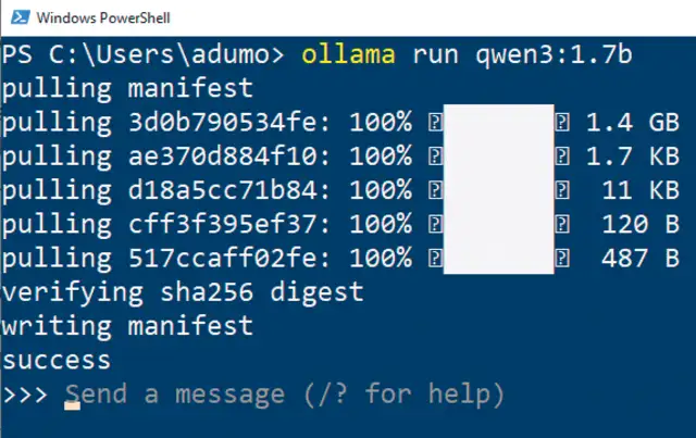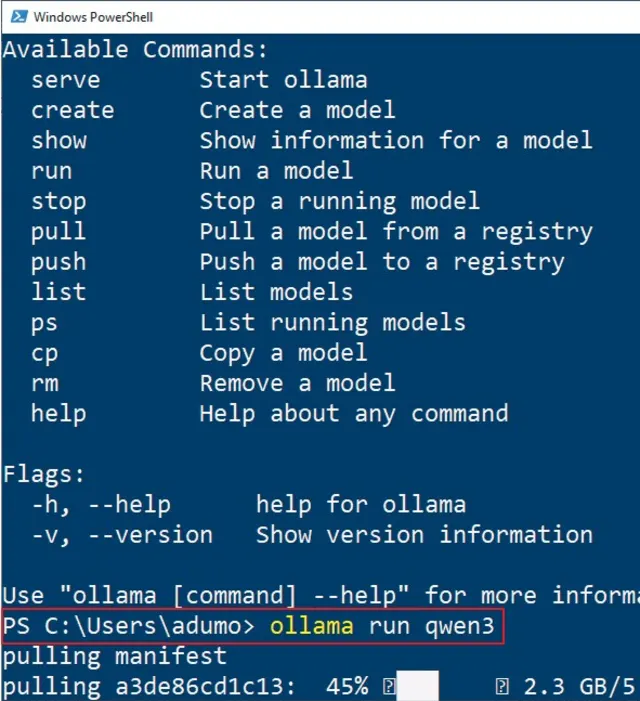 Bild 8: Um ein Modell auszuführen, geben Sie ollama run ein, gefolgt vom Modellnamen