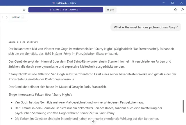 Bild 2: Llama 3.2 von Meta ist ein fortschrittliches KI-Modell, das auf Fragen sehr ausführlich antwortet