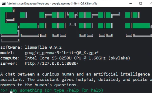 Bild 5: Llamafiles laufen in der Eingabeaufforderung und lassen sich auch dort bedienen