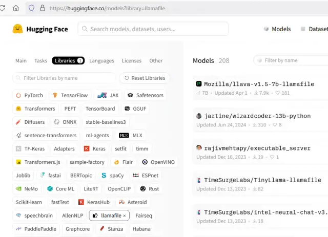 Bild 7: Auf der Webseite von Hugging Face stehen mehr als 200 Llamafiles bereit