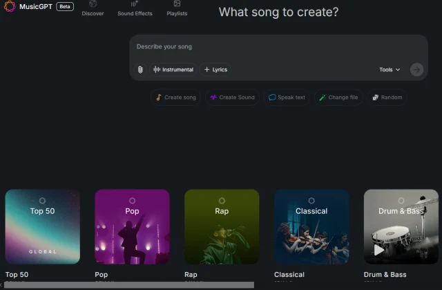 Tipp: Je detaillierter der Prompt, desto besser das Ergebnis. MusicGPT verarbeitet Details zu Instrumenten, Tempo, Stimmung, Struktur und zu bestimmten Musiktechniken. Ein Beispiel: heiterer akustischer Folk-Track mit Gitarre, Banjo, Saxofon und sanftem Schlagzeug bei 90 BPM, geeignet für eine lange Zugreise.
