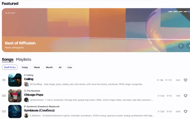 Bild 4: Riffusion ermöglicht den Zugriff auf eine umfangreiche Bibliothek mit KI-generierter Musik