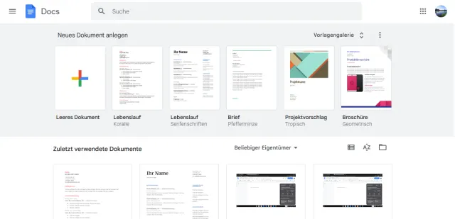Quelle: PCtipp.chRechts davon befindet sich die Vorlagengalerie mit Beispielen wie «Lebenslauf», «Brief», «Projektvorschlag» und mehr. Darunter ist der Punkt «Zuletzt verwendete Dokumente» zu finden.
