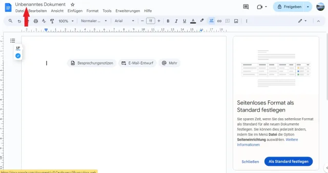 Bild 2: Ein neues Dokument startet ohne Namen