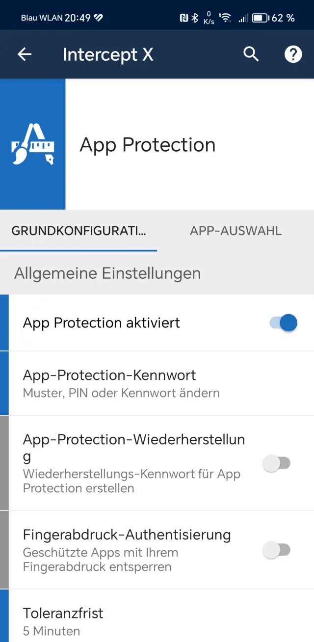 Mit diesem internen Tool lässt sich der Zugriff auf einzelne Apps schützen. Allerdings muss die Sophos-App dafür ein Geräte-Administrator sein. Beim Aktivieren der Funktion prüft die App das und führt Sie direkt zur Aktivierung der erhöhten Rechte. Danach lassen sich in der App-Liste die Apps auswählen, deren Verwaltung Sie schützen möchten. Beim Öffnen einer geschützten App wird etwa eine zuvor festgelegte PIN verlangt.