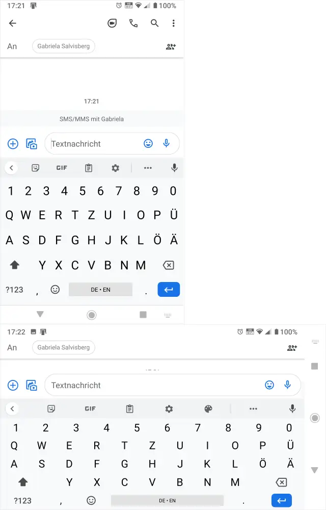 Drehen Sie das Smartphone vorübergehend in die Horizontale. Damit wird zwar der obere Teil der Displayanzeige verkleinert, aber die Tastatur wird in die Breite gezogen. Damit vergrössern sich die Abstände zwischen den Buchstaben. Das könnte die Treffsicherheit etwa bei einer Passworteingabe erhöhen.