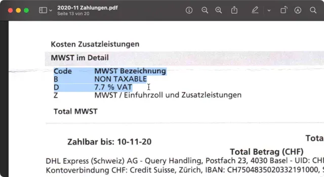 In der gescannten Vorlage lassen sich durch OCR erkannte Texte markieren und kopieren
