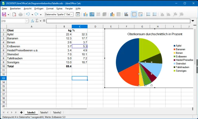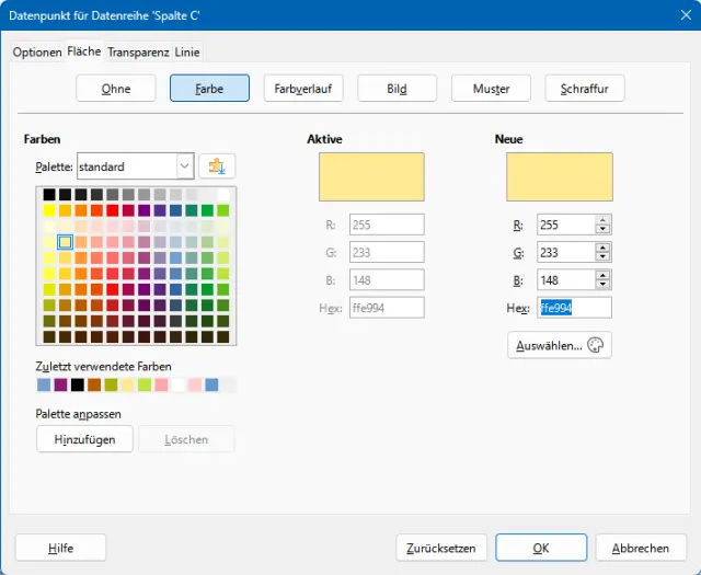 LibreOffice Calc: Diagrammfarben manuell oder aus Tabelle zuweisen
