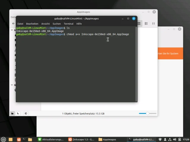 Anschliessend können Sie die Anwendung durch ./NAME_DER_DATEI.AppImage (bzw. hier: ./Inkscape-0e150ed-x86_64.AppImage) starten oder im Dateimanager (in Mint ist es Nemo) mit rechts draufklicken und Öffnen wählen.