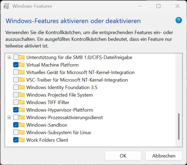 Falls es immer noch nicht klappt, klicken Sie bei laufendem Windows auf Start und geben Features in das Suchfeld ein, Bild 7. Wählen Sie Windows-Features aktivieren oder deaktivieren aus. Setzen Sie ein Häkchen vor Windows-Hypervisor-Plattform, bestätigen Sie mit OK und starten Sie den Rechner neu.